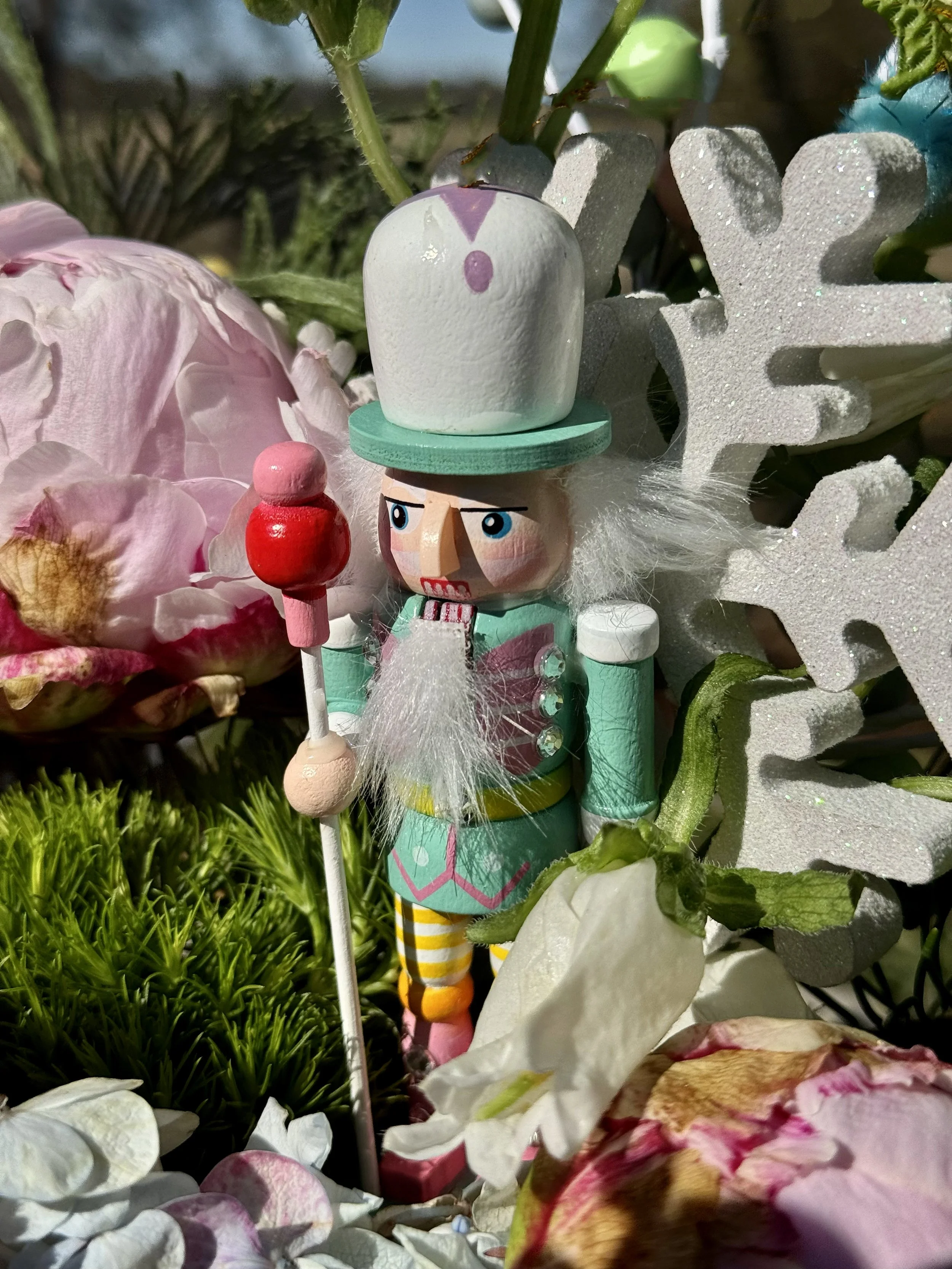 ""The nutcracker sits under the holiday tree, a guardian of childhood stories."